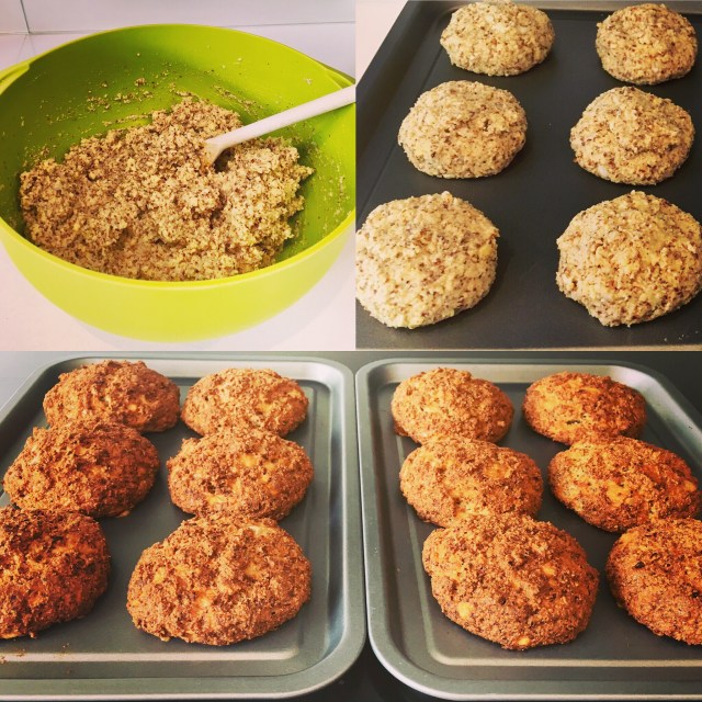 Make a small handful into a ball and place on non-stick baking tray and slightly flatten.