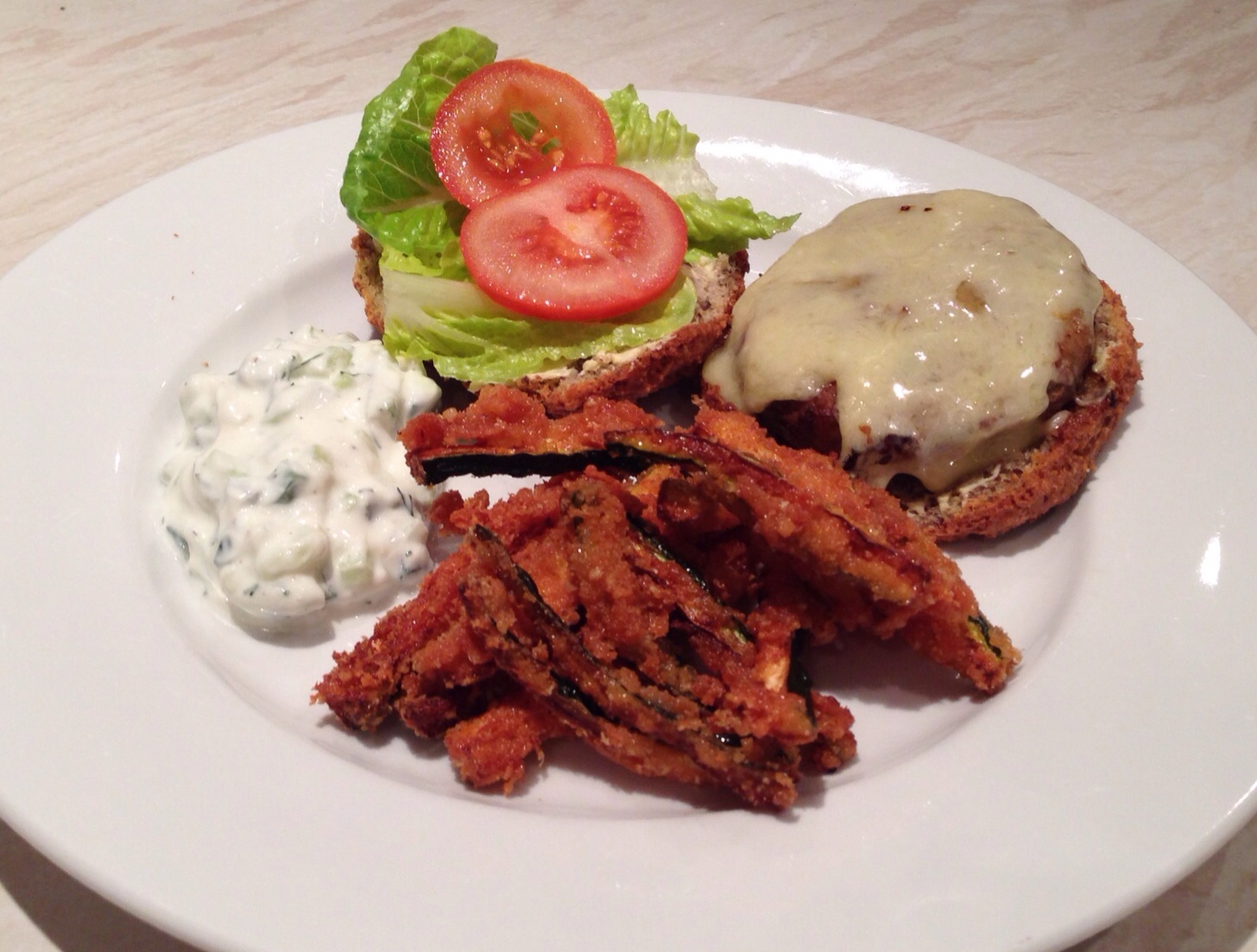 I like to serve with courgette chips, on a cheesey bun with salad and a side of tzatziki.