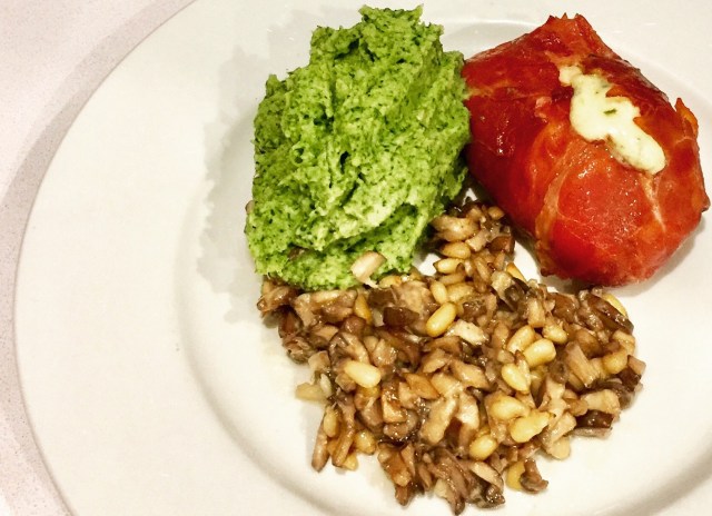 In a bowl mix cubes of butter, chopped mozzerlla and garlic, squeeze into balls and lay in the middle of each chicken breast. Wrap the chicken around the filling and then wrap the chicken with parma ham.