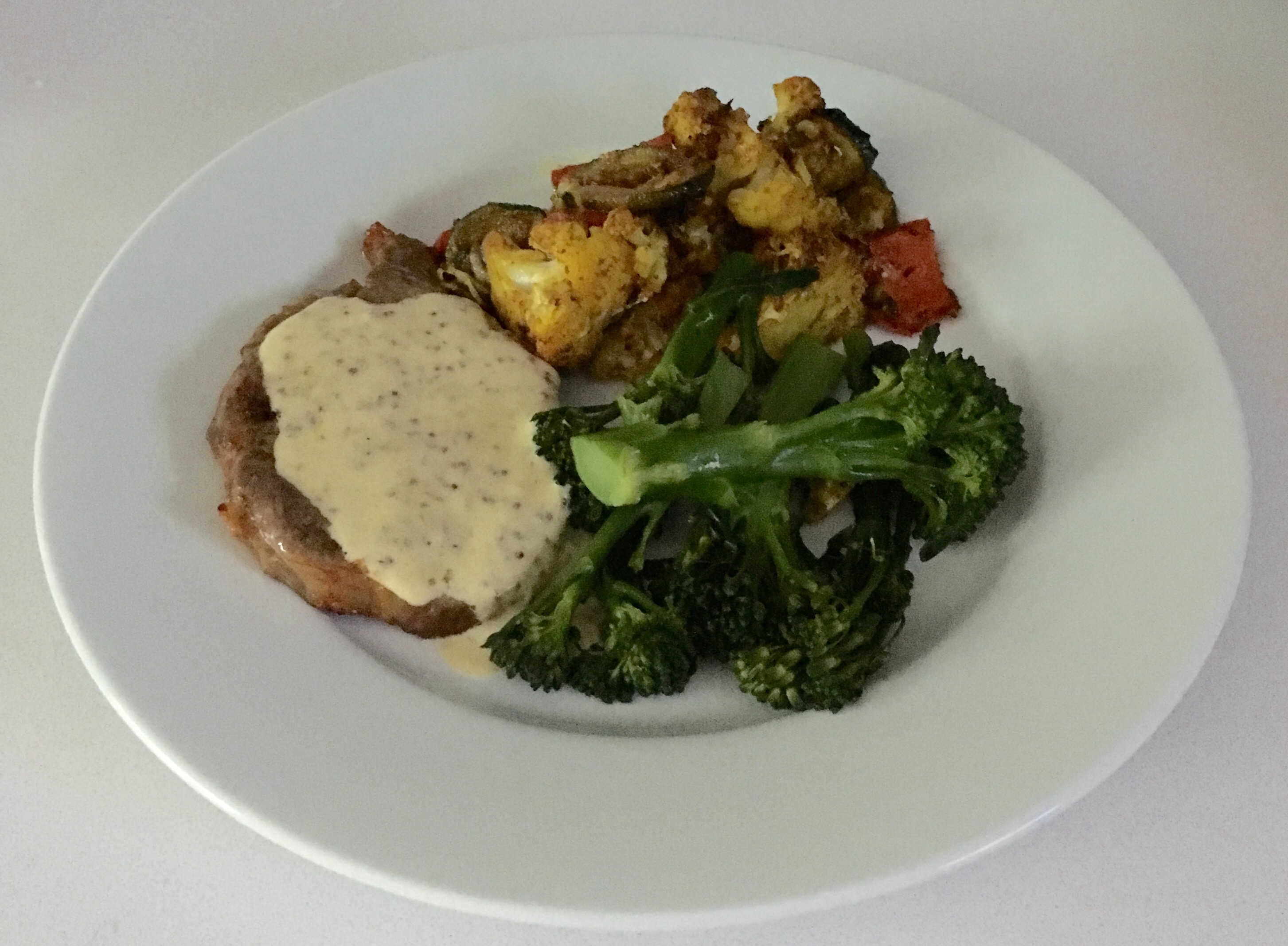 Chop veg, I’ve used cauliflower, red pepper and courgette, place in a non stick cooking tray, drizzle with olive oil, curry powder, turmeric, mild chilli powder (you could add further spice or fresh chilli if you like it hot!) Mix veg to get an even covering of the spice.